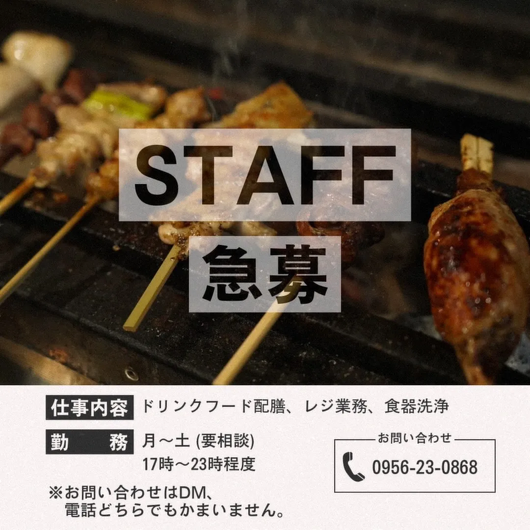 ・勤務時間 月〜土、17時〜23時程度(要相談)
